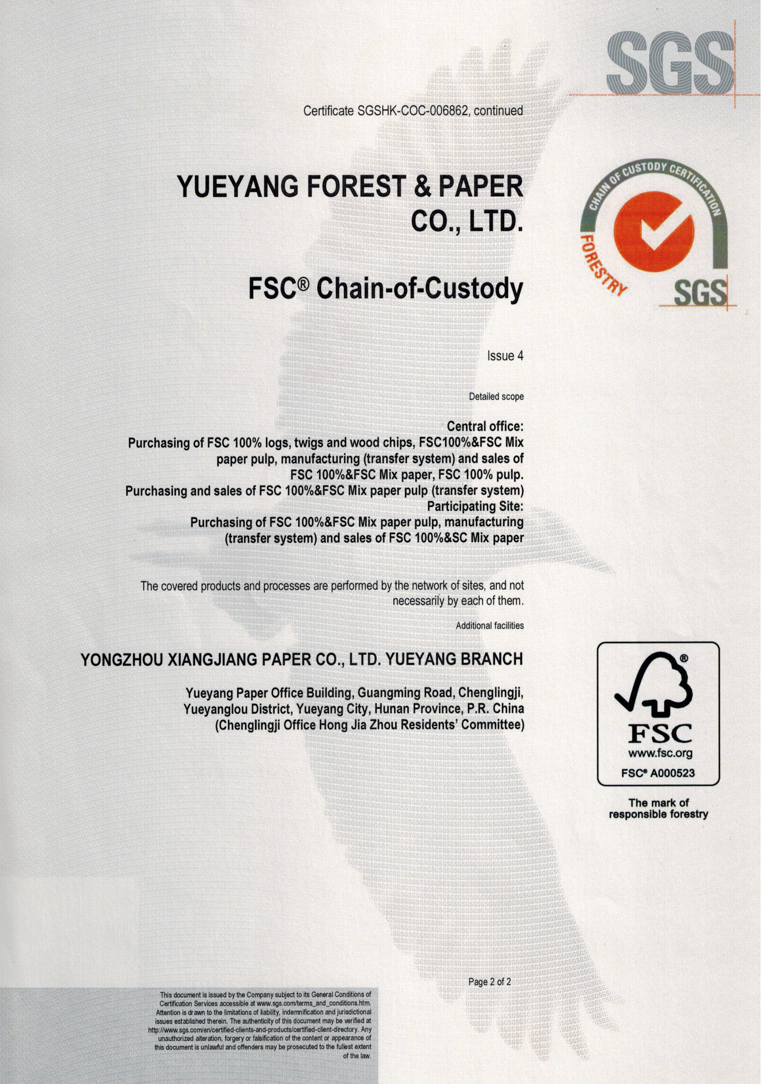Food Grade Paper FSC Certificate